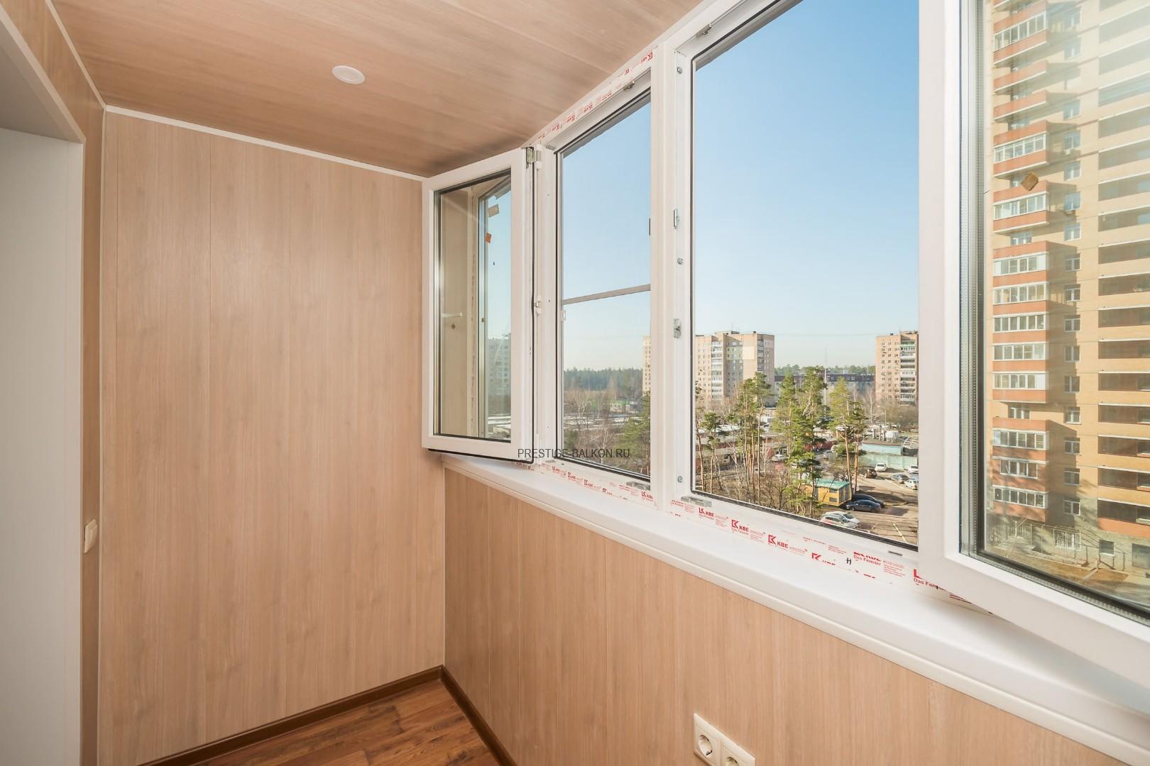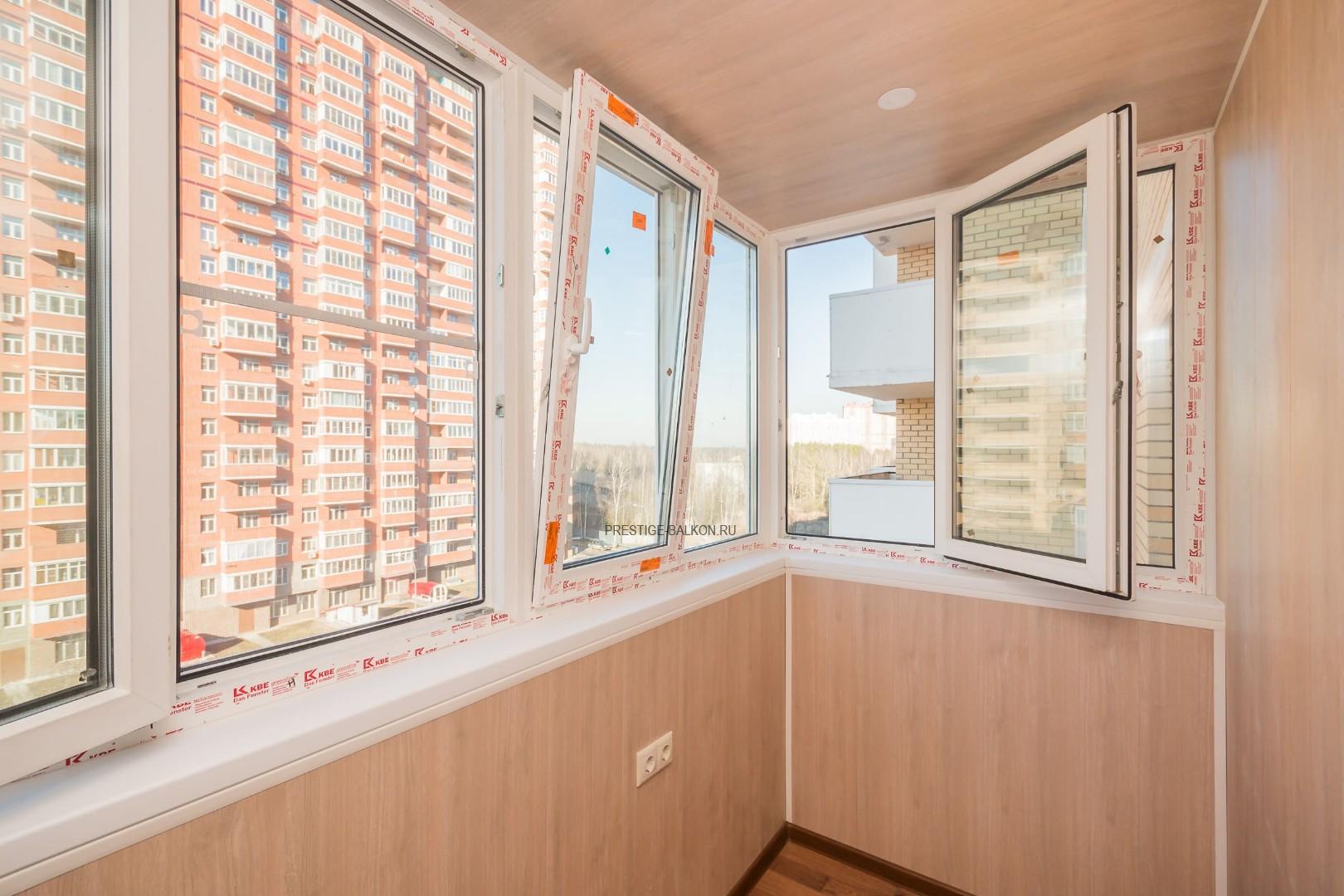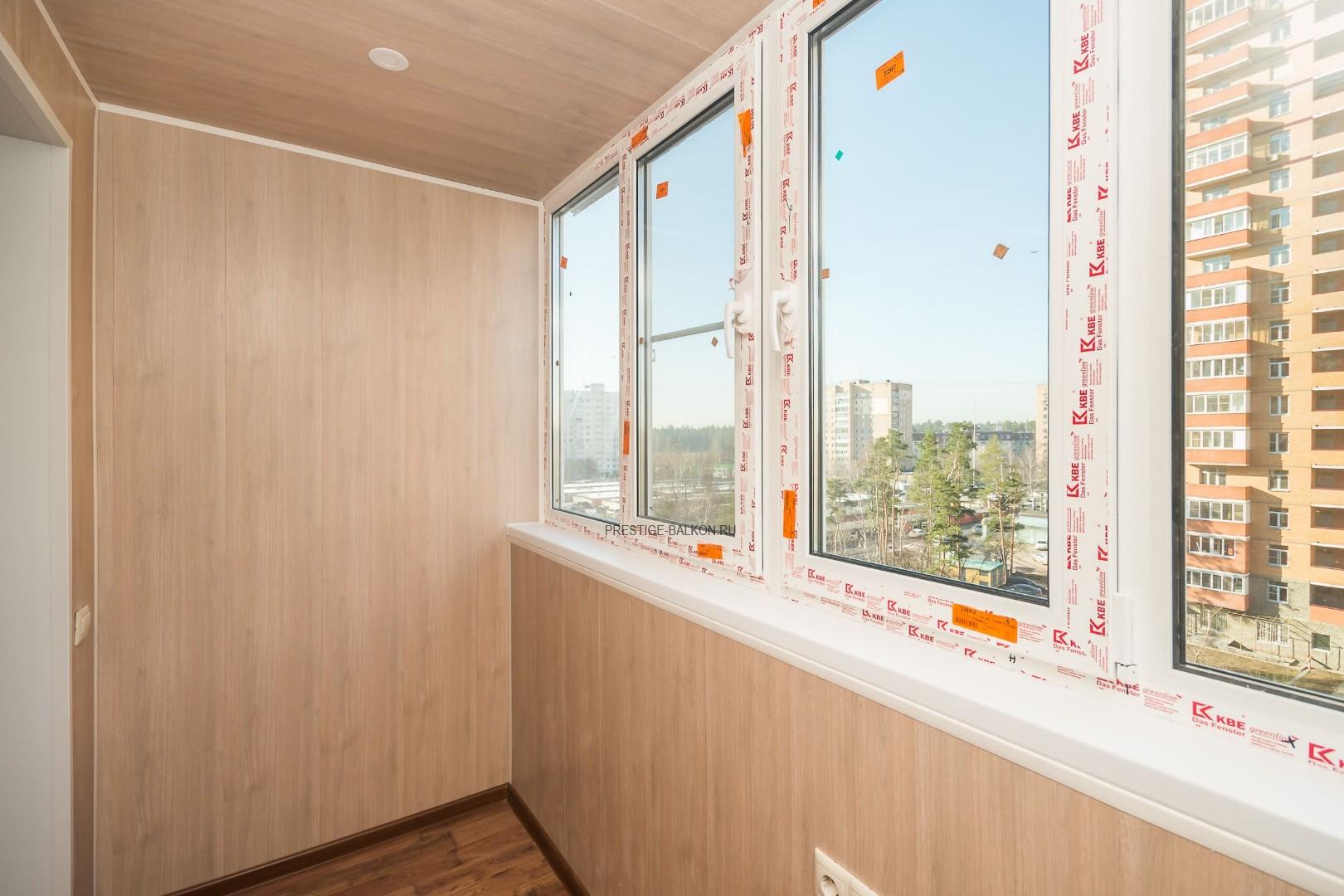 Работа "под ключ" - остекление, утепление и отделка балкона немецким профилем KBE Expert 70 мм с двухкамерным стеклопакетом.